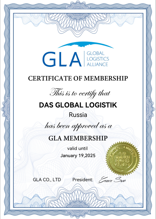 - Сертификат, подтверждающий членство в GLA Family (Project Logistics Alliance) по проектным грузам на 2023-2025 гг.